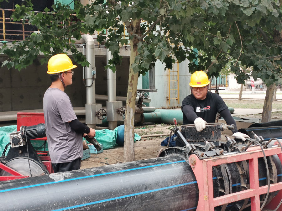 為保證施工進度,車間、設備科、施工方一起制定施工計劃,簽訂施工進度協(xié)議,進入七月份后最高溫度達到39攝氏度,為保證施工不受影響,經與安全部門溝通,施工避開中午高溫時間段,早上班晚下班。施工人員每天早晨服用規(guī)定量的防暑藥,每日攝取一定量的淡鹽水。車間安排專職監(jiān)護人員,同施工隊一同上下班,監(jiān)督施工安全及協(xié)調人員防暑等相關工作。烈日炎炎下,每個施工點都能看見一位身穿綠色馬甲、頭戴白色監(jiān)護帽的安全監(jiān)護員。
