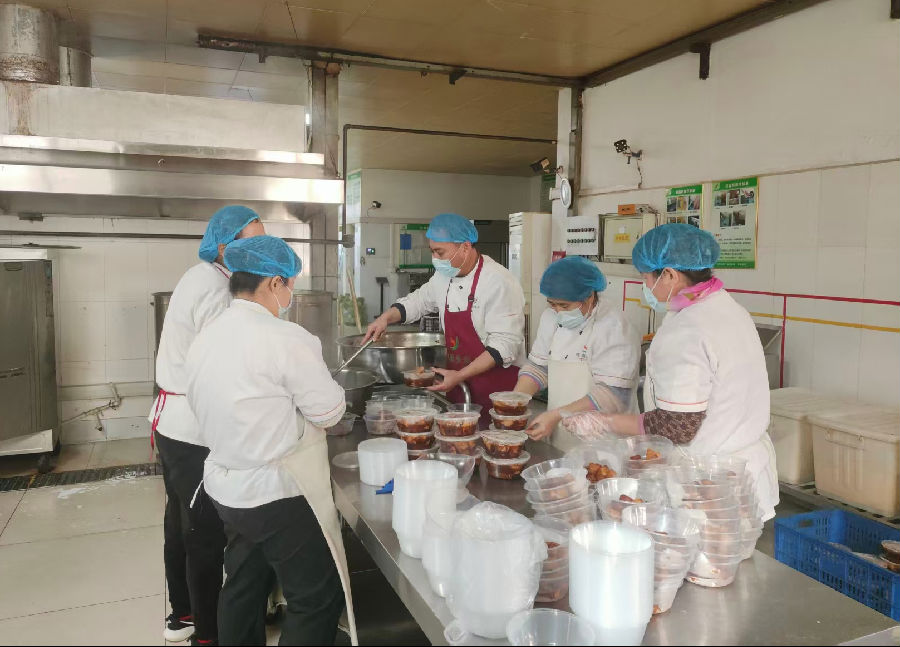 開飯的時間到了,結束了一上午的忙碌工作后,員工們看著餐盒里滿滿當當的土豆燉雞塊、色澤誘人的麻辣鴨腿,還有暖胃爽口的蛋花湯,大家的臉上都露出了開心的笑容。“公司太貼心了,讓大家吃到這么豐盛的飯菜!”一位員工捧著餐食笑著說道。還有加班的員工將餐食打包,帶回崗位與同事分享這份節日的美味。