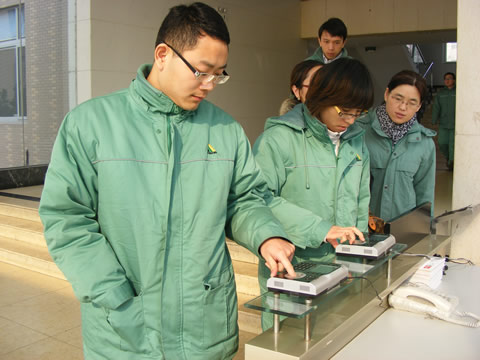 日前,公司新上的指紋識別系統正式投入運行。該系統主要包括指紋機及附屬設備。指紋機以采集的指紋辨識人員身份,對辦公區的考勤統一管理,也進一步規范了外來人員出入公司的秩序。(圖為員工打指紋下班)