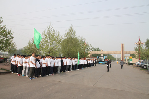 8:40,全長300余米的整齊隊伍在公司大旗的指引下,集中行進,沿晏嬰路,至齊魯大街,行迎賓路,抵達南外環。