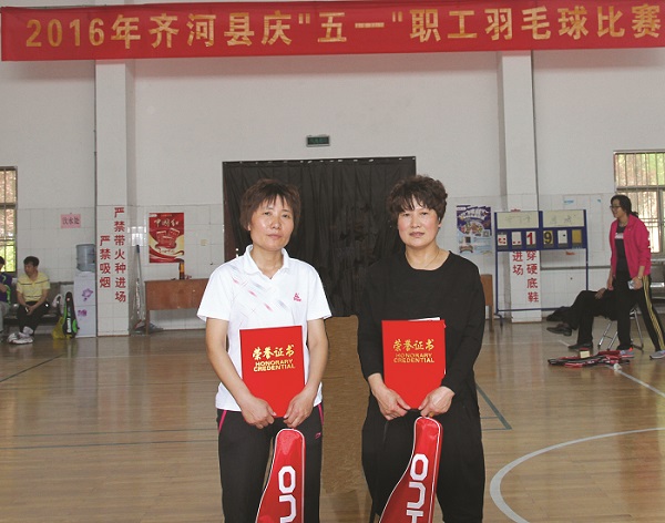據悉,此次齊河縣慶“五一”職工羽毛球比賽由縣總工會和體育局聯合舉辦,歷時3天,設團體、男單、女單、男雙、女雙、混雙等多個項目,各企事業單位參與熱情高漲、報名踴躍,共有80多個單位參加了選拔,最終44個單位300余人參加比賽,經過激烈角逐,我公司員工趙麗麗、王光英獲得90組女子雙打亞軍,趙麗麗、孫玲獲普通女子雙打第四名,為公司贏得了榮譽。