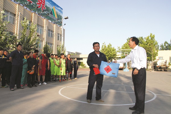 5月11日14:15,公司籃球場上,人頭攢動,熱鬧非凡。紅底白字的指引牌,整齊劃一、顏色各異的隊服,赤、橙、黃、綠、藍、白、黑,各參賽隊員步伐堅定、精神抖擻,公司領導致開幕辭,裁判代表發言,運動員代表宣誓,開場舞《激情》的上演,動感的旋律,優美的動作,讓人眼前一亮,并在一場激烈的籃球小組對抗賽中正式拉開帷幕。