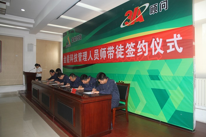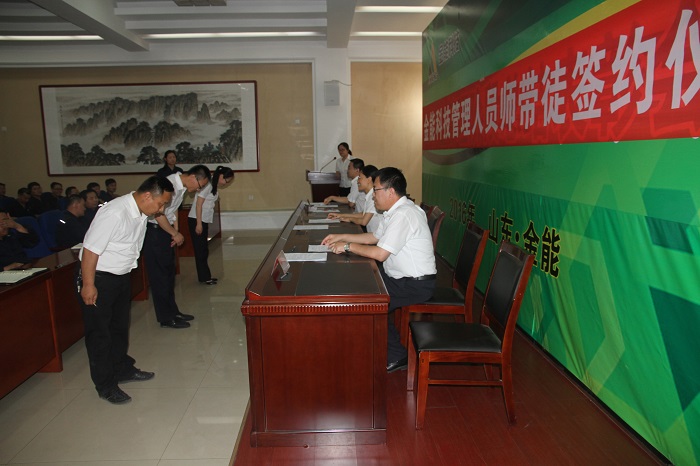 管理及技術人員師帶徒,是今年培訓工作的一項重要內容。管理上,師傅由管理經驗豐富的中高層管理人員擔任,徒弟重點篩選有發展潛力、綜合素質強的人;技術上,師傅由業務精湛的技術人員擔任,徒弟是技術悟性高、好學上進的年輕人。據了解,在此次選拔簽約的53對師徒中,有1位老師同時帶2名徒弟,也有既當老師、也當徒弟,薪火傳承,還有畢業不久的李金偉和馮萍夫婦,同為徒弟,同臺簽約。