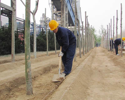 人勤春早。公司全員行動,植樹添綠。大家三五一組,揮锨挖坑、扶樹填土,圍堰澆水、保墑刷白……忙得不亦樂乎,一幅忙碌的植“綠”圖,今春將完成植樹4000余株(圖為員工勞動現場)。
